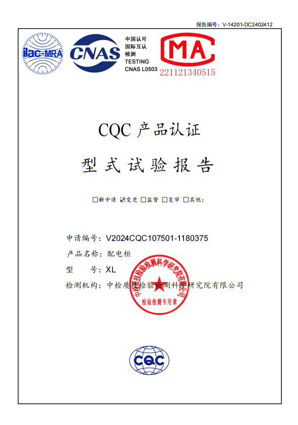 XL配電柜試驗報告